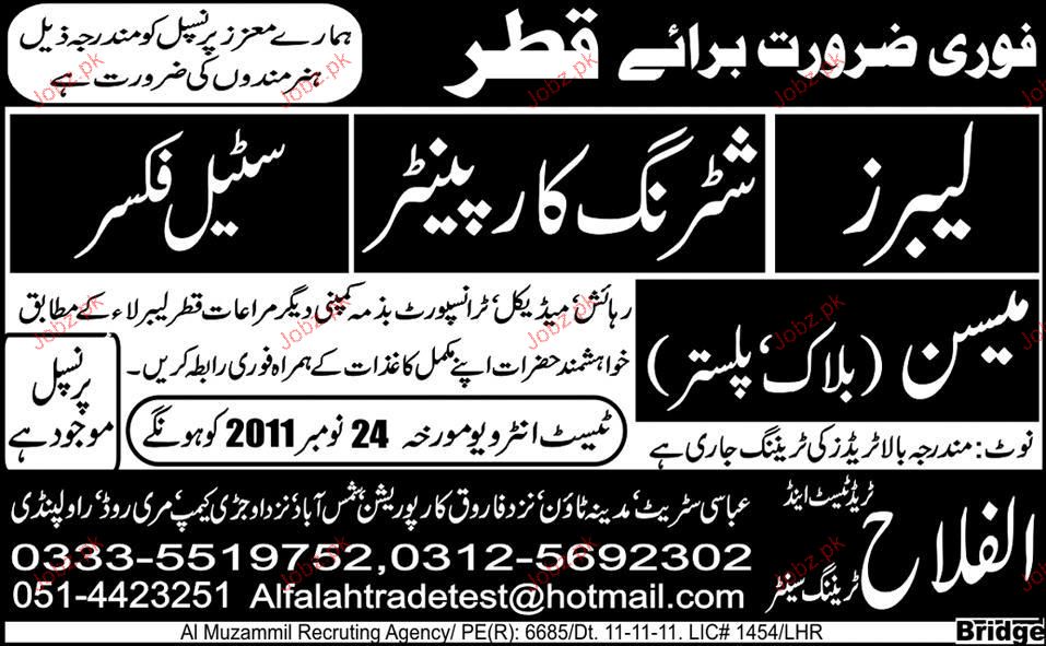 Labors, Shuttering Carpenter, Steel Fixer Job Opportunity