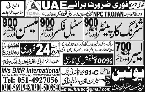 Labors, Shuttering Carpenters Job in UAE Company NPC Trojan