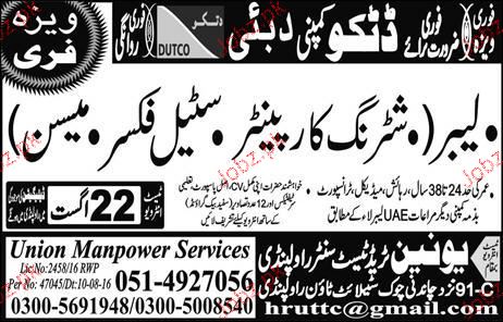 Labors, Shuttering Carpenters, Steel Fixers And Mason Wanted