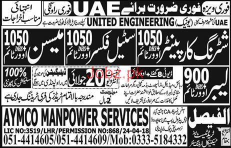 Latest Faisal Usman Overseas Employment Promoters Construction Posts UAE 2025