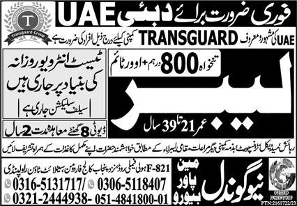 New Gondal Manpower Bureau is looking for candidates for following posts as per job advertisement published in daily Express Newspaper of December 10, 2023 for location UAE, dubai UAE: