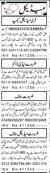 Vacant posts including eeg technician, lady doctor, sonologist, ultrasound technologist and emg technician are announced in MEDICAL PRIVATE Peshawar, peshawar Khyber Pakhtunkhwa KPK Pakistan as per 11 August 2022 advertisement in daily Aaj Newspaper. Educational qualifications required Others, MBBS and Intermediate etc.