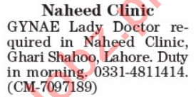 Lady Doctor & Gynecologist Jobs 2021 in Lahore