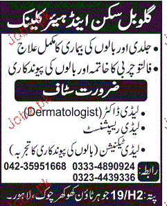 Lady Doctors, Lady Receptionist and Lady Technicians Wanted