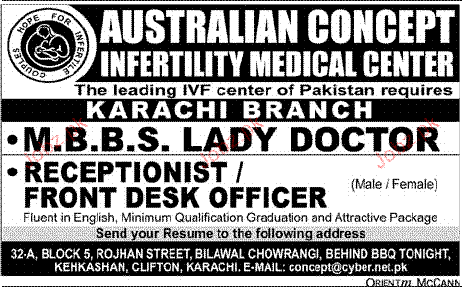 Lady Doctors, Receptionist and Front Desk Officer Wanted
