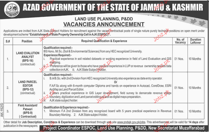 Apply as per details in job advertisement. Login to view further details of how to apply via https://www.jobz.pk online.