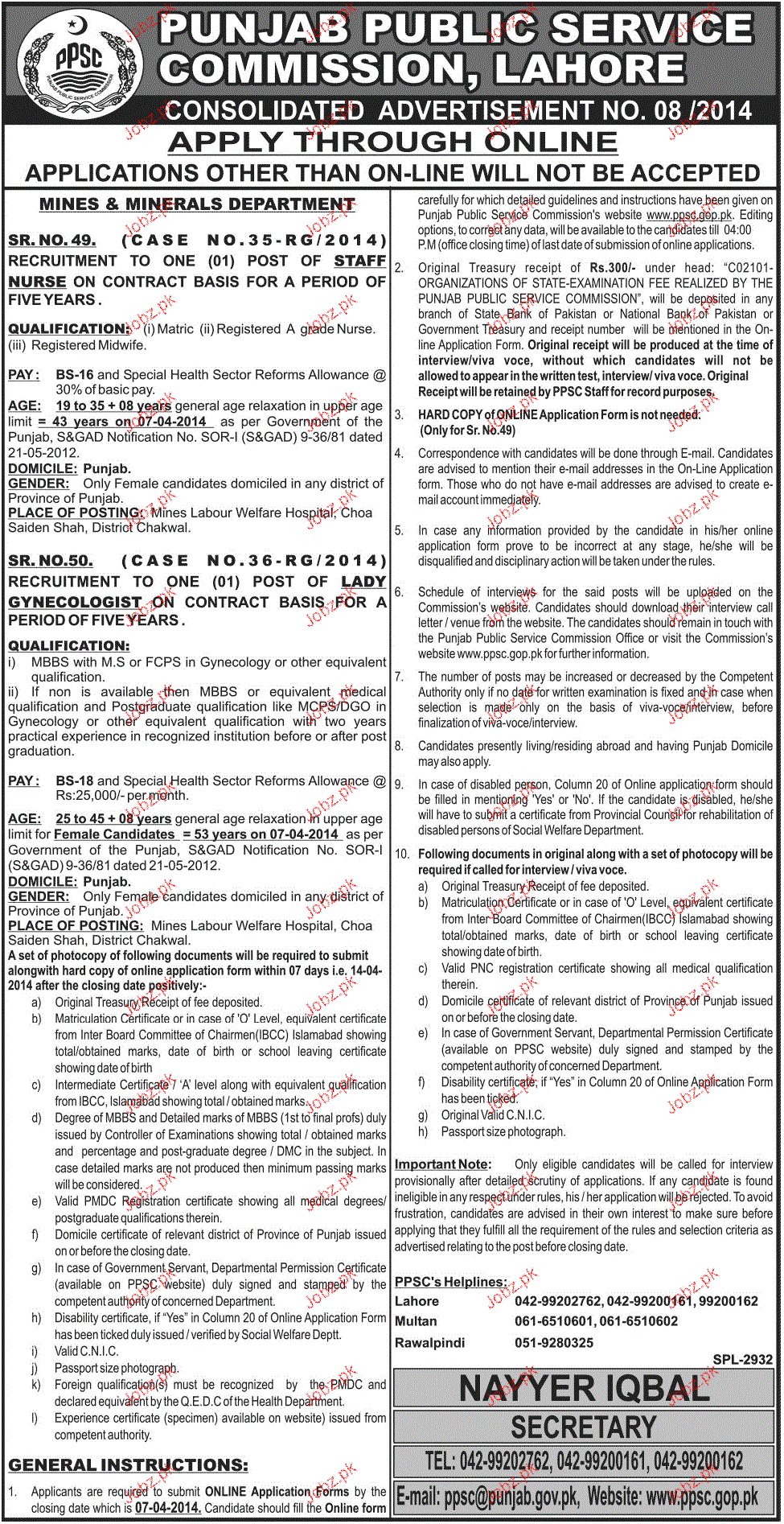 Lady Gynecologist And Staff Nurses Job In Punjab Public Serv