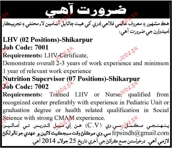 Lady Health Visitors and Nutrition Supervisor Wanted