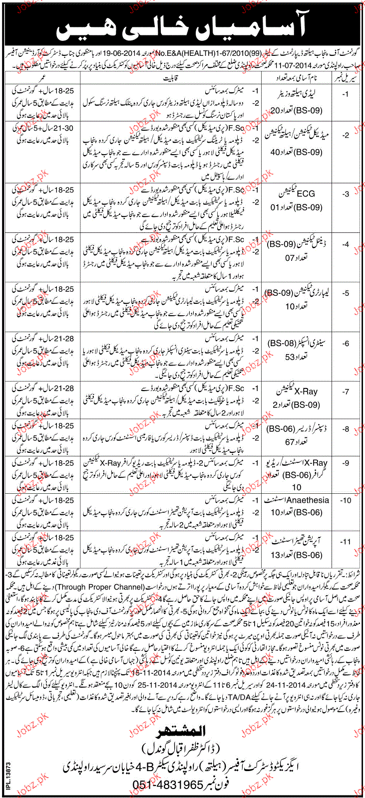 Lady Health Visitors, ECG Technicians, Lab Technicians Wante