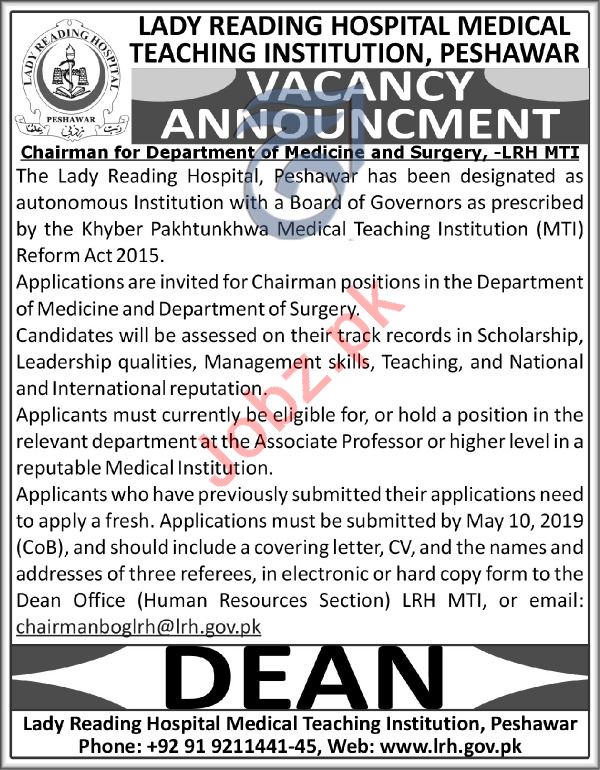 Latest Lady Reading Hospital Management Posts Peshawar 2025