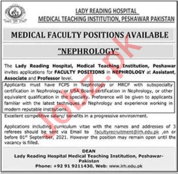 Lady Reading Hospital LRH Jobs 2021 For Professor Nephrology