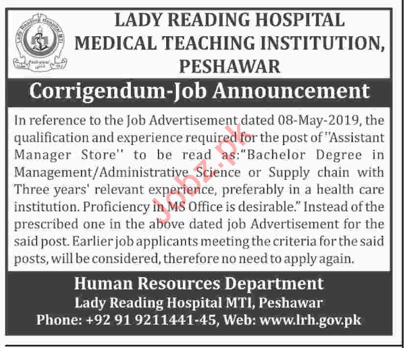 Lady Reading Hospital LRH Peshawar Jobs 2019