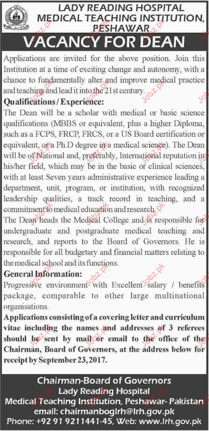 Lady Reading Hospital Medical Teaching Institution Jobs 2017