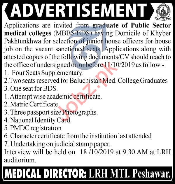 Latest Lady Reading Hospital Medical Posts Peshawar 2025
