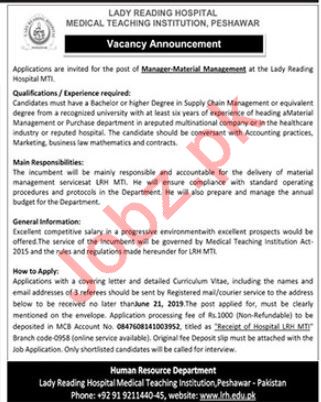 Lady Reading Hospital MTI Peshawar Jobs 2019