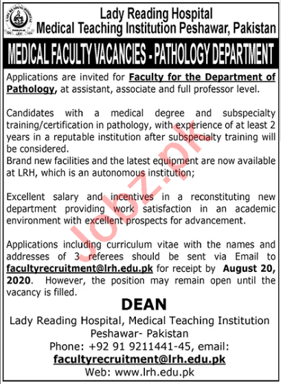 Lady Reading Hospital Peshawar Jobs 2020 Medical Directors