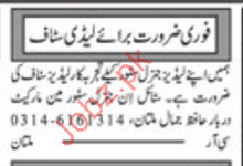 Apply as per details in job advertisement. Login to view further details of how to apply via https://www.jobz.pk online.
