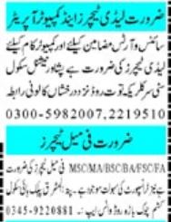 Lady Teacher & Computer Operator Jobs 2023 in Peshawar