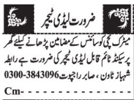 Lady Teacher & Science Teacher Jobs 2022 in Quetta