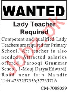 Latest Farooqi Grammar School Teaching Posts Lahore 2025