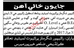 Apply as per details in job advertisement. Login to view further details of how to apply via https://www.jobz.pk online.