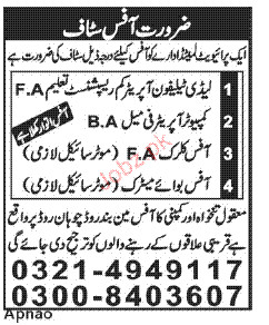 Lady Telephone Operator, Computer Operator Job Opportunity