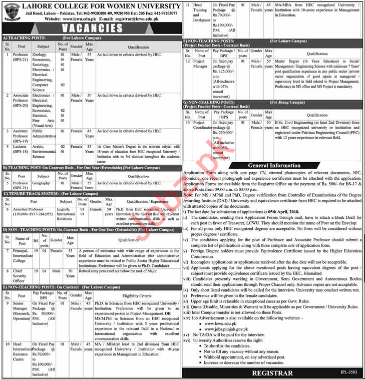 Lahore College for Women University is currently looking for highly qualified individuals for the positions of Professors, Associate Professors, Project Manager, Head, Assistant Professor, Lecturers, Principal, Chief Security Officer, Senior Manager, Coordinators.