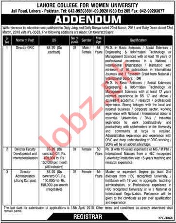Latest Lahore College For Women University LCWU Management Posts Lahore 2025