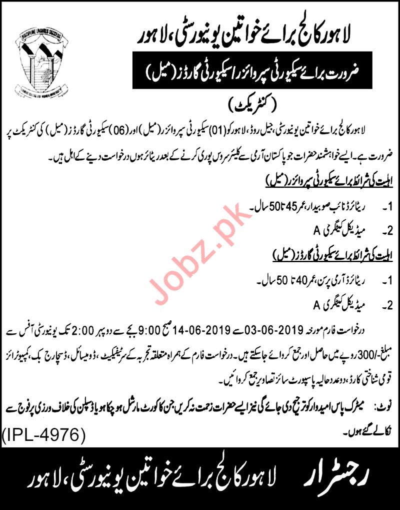 Latest Lahore College for Woman University Security Posts Lahore 2025
