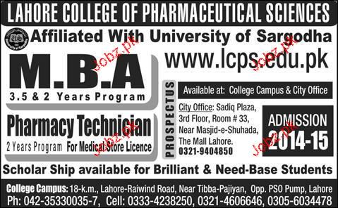 Lahore College of Pharmaceutical Sciences Admission in MBA in Lahore. Read newspaper ad for exact details.