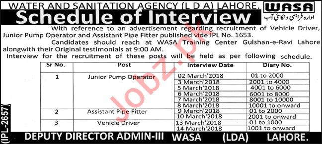 Latest Water and Sanitation Agency WASA Posts Lahore 2025