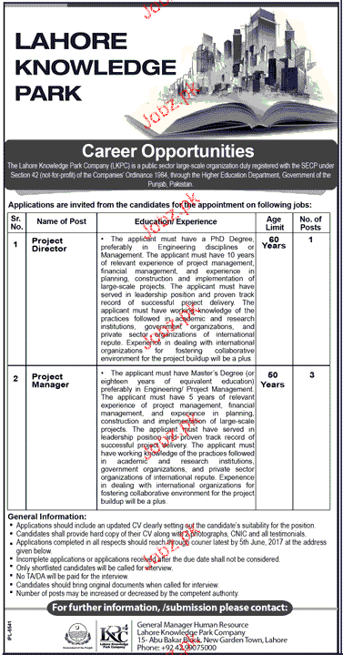 Apply as per details in job advertisement. Login to view further details of how to apply via https://www.jobz.pk online.