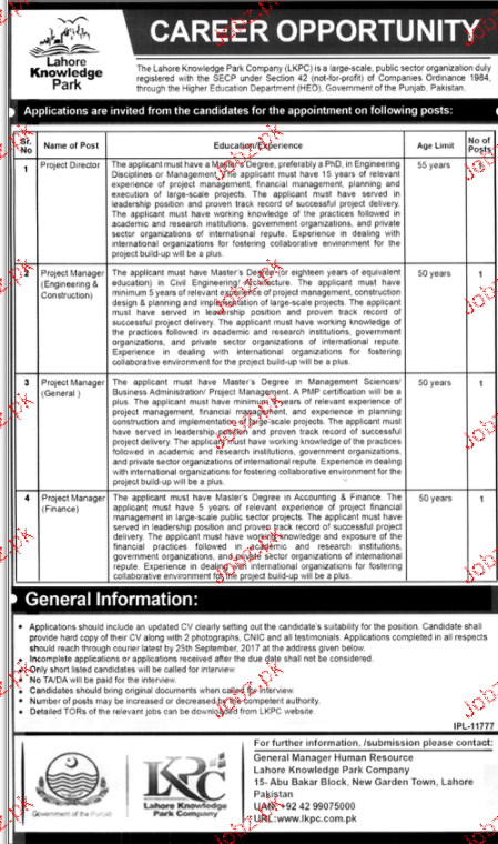 Apply as per details in job advertisement. Login to view further details of how to apply via https://www.jobz.pk online.