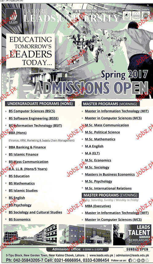 Lahore Leads University Admission in BS and MA in lahore. Read newspaper ad for exact details.