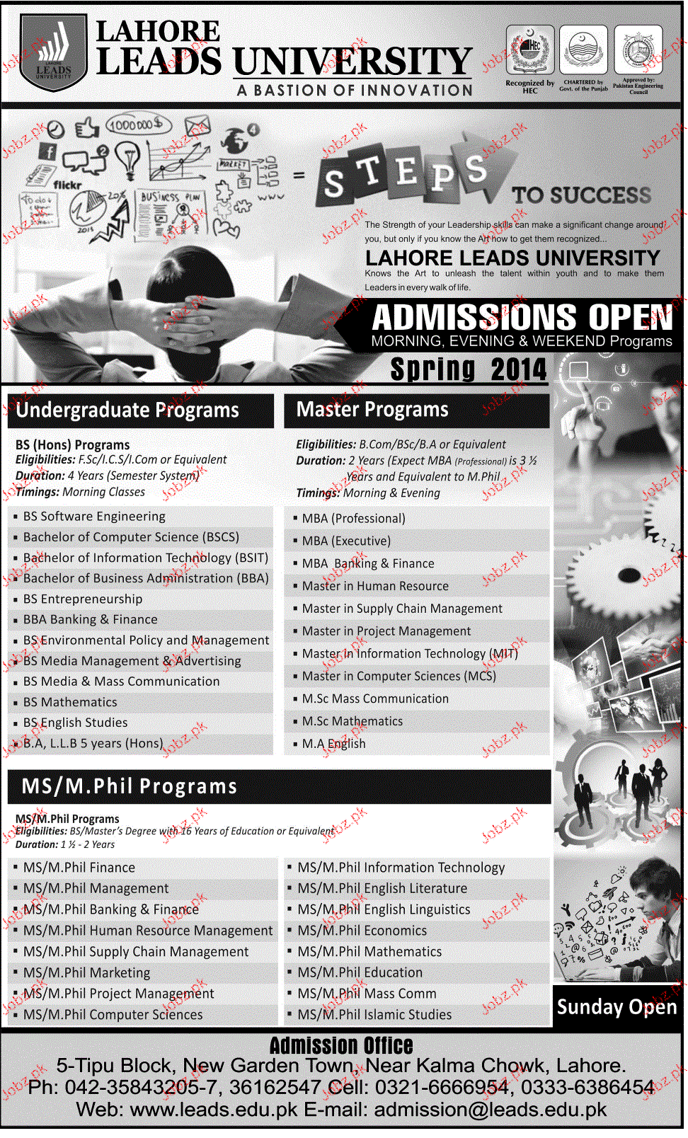 Lahore Leads University Admission in MS/ MPhill, MA and Undergraduate Program in Lahore Read newspaper ad for exact details.