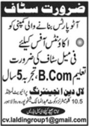 Lal Din Engineering Lahore Jobs 2021 For Accountant