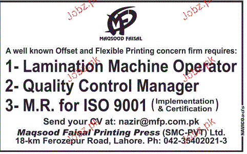 Apply as per details in job advertisement. Login to view further details of how to apply via https://www.jobz.pk online.