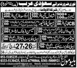 Blue Moon Enterprises Riyadh, riyadh Saudi Arabia invites applications from eligible candidates for the post of excavator operator, heavy equipment mechanic, mason, land surveyor, heavy equipment electrician, pipe line plumber, jcb operator, heavy driver, shovel operator and labor as per advertisement of March 15, 2022 published in daily Express Newspaper. Primary, Middle, Intermediate and Matric etc. educational qualification will be preferred.