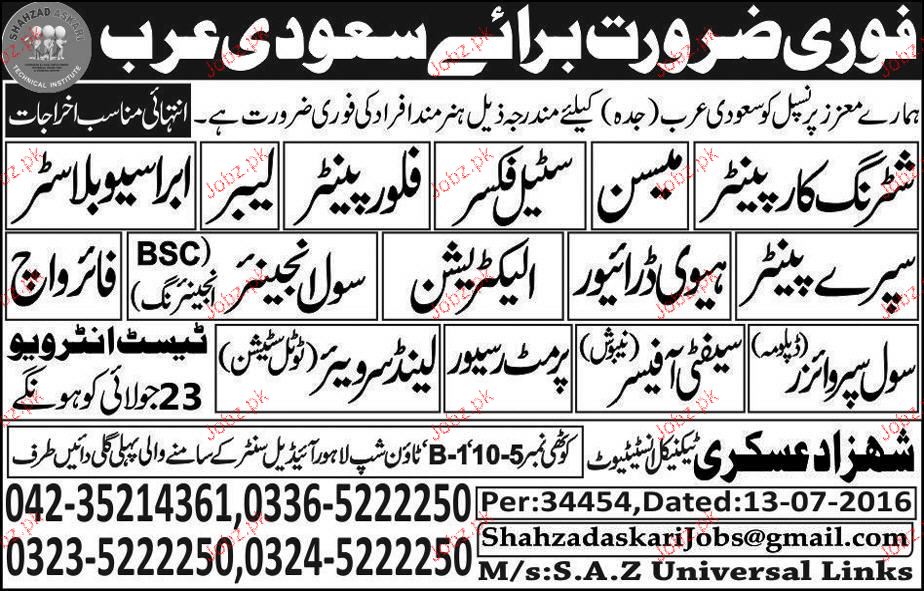 Apply as per details in job advertisement. Login to view further details of how to apply via https://www.jobz.pk online.
