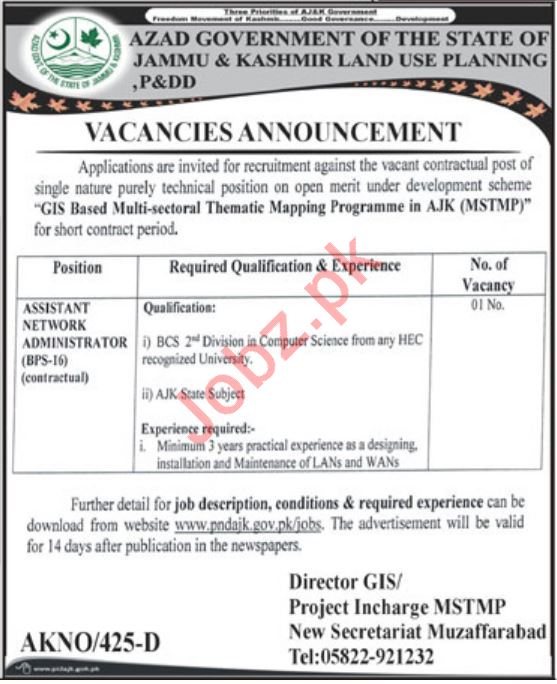 Land Use Planning P&DD AJK Jobs For Network Administrator