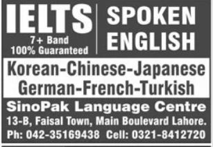 SINOpak Language Centre Spoken English, Korean, Chinese, Japanese, German, French, Turkish admissions 2022 has been announced. Eligible students who qualify as per admission criteria in SINOpak Language Centre Lahore Punjab Pakistan can apply in Language Course for academic year 2022. Students for admissions in Course & criteria can apply as per Private institute admission policy 2022 before closing date March 2, 2022 as per advertisement. Read newspaper ad for exact details.