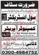 Lasani Trade Test & Technical Training Center Lahore, lahore Punjab Pakistan invites applications from eligible candidates for the post of civil instructor and computer operator as per advertisement of November 18, 2024 published in daily Jang Newspaper. Preferred Education is Matric, Middle and Intermediate etc.