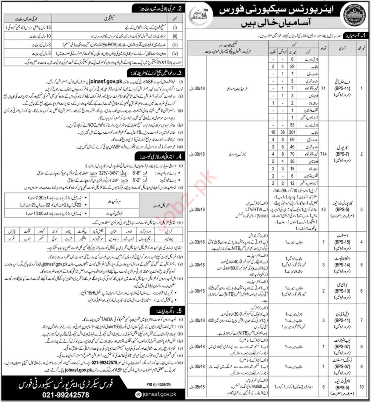 Vacancies in Airport Security Force ASF Advertisement December 2024