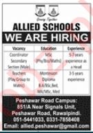 Allied Schools invites applications for job positions advertised in daily Jang dated 25 February 2024 for following vacancies in Rawalpindi, rawalpindi Punjab Pakistan.