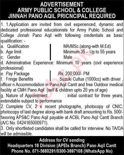 Latest Army Public School & College APS&C Education Posts Pano Aqil 2025