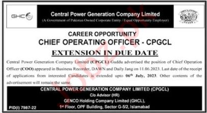 Central Power Generation Company Ltd jobs advertisement dated about 25 June 2023 in daily Jang Newspaper invites application for the vacant post of chief operating officer in Islamabad, islamabad Islamabad Pakistan. Bachelor, MS and Master etc. educational qualification will be preferred.
