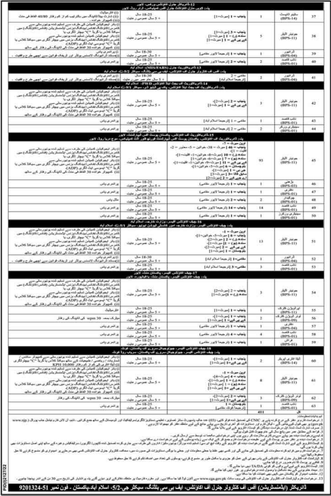 Controller General of Accounts CGA Islamabad, islamabad Islamabad Pakistan invites applications from eligible candidates for the post of data entry operator, farash, driver, chowkidar, clerk, telephone operator, sweeper, sanitary worker, editor, daftari, mali, naib qasid and stenotypist as per advertisement of October 5, 2022 published in daily Dunya Newspaper. Preferred Education is Bachelor, MS and Master etc.