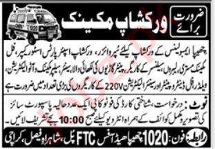 Chhipa Welfare invites applications for job positions advertised in daily Jang dated 4 May 2025 for following vacancies in Shahrah-e-Faisal Karachi, karachi Sindh Pakistan.