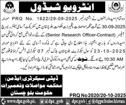 Communication & Works Department is looking for candidates for following posts as per job advertisement published in daily Express Newspaper of October 21, 2025 for location Quetta, quetta Balochistan Pakistan: