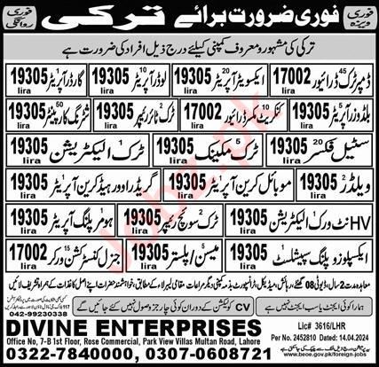 Divine Enterprises invites applications for job positions advertised in daily Express dated 20 May 2024 for following vacancies in Ankara, ankara Turkey.